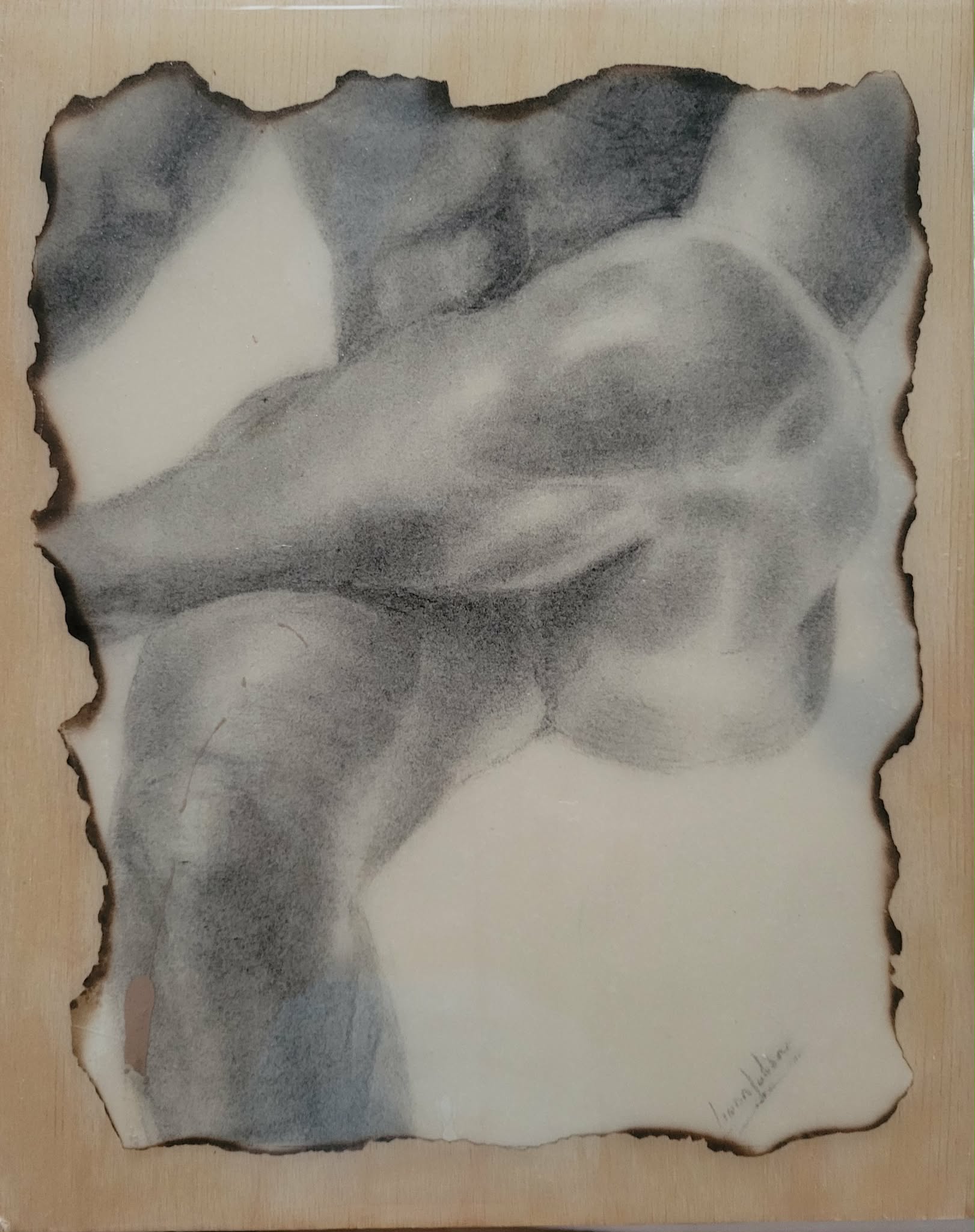 Fusain sur feuille cotton et marouflage sur bois 8" x 10"