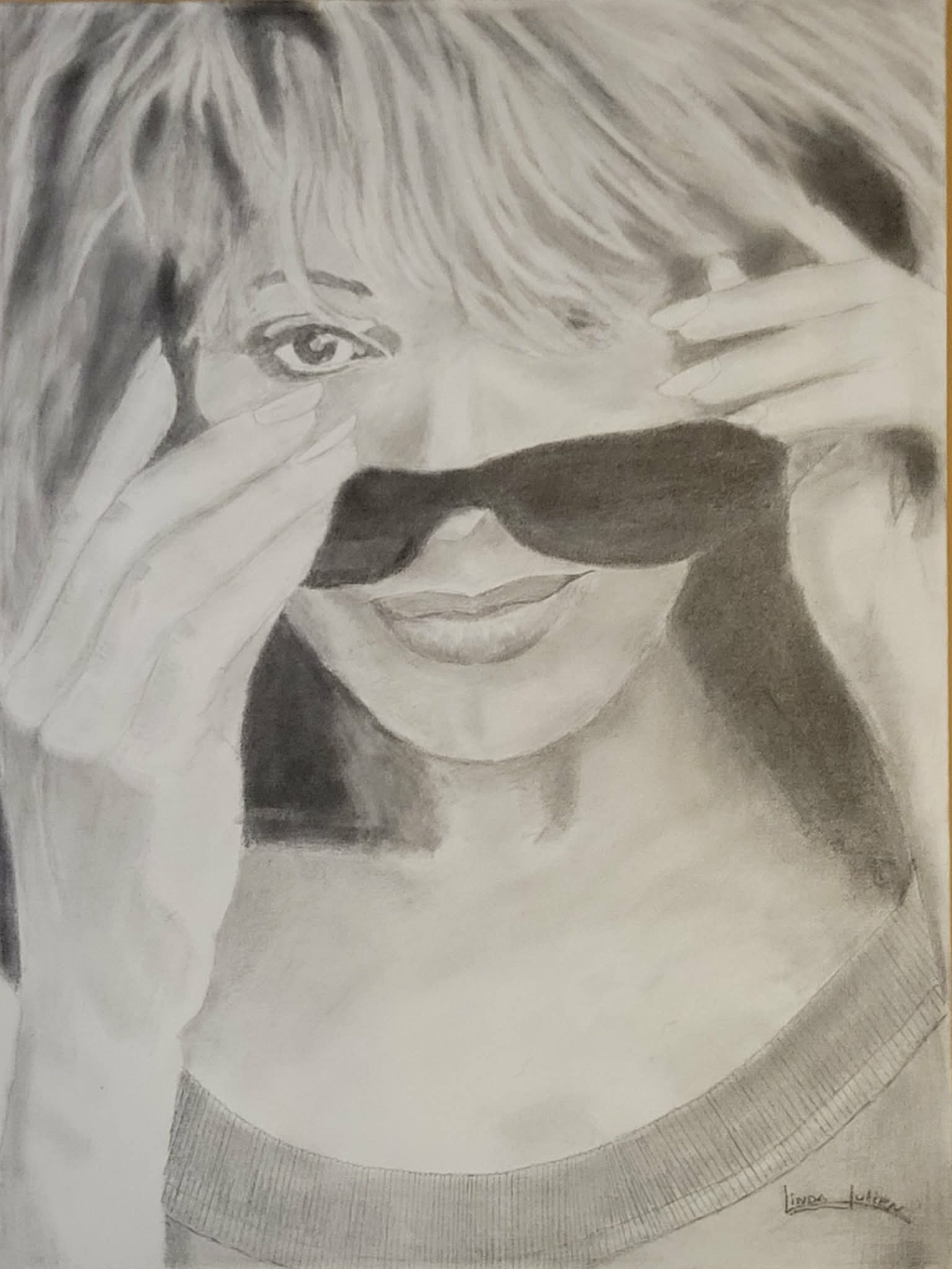 Fusain sur papier, encadré avec vitre. 19" x 13" vitré et encadré
